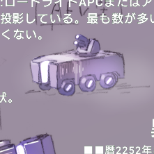 :北極超構造体の出現後、最初に発見された異相存在。ロードライトAPCやアリウス装甲戦闘車を投影しているらしく、武装は連装タイプの機銃塔が一基。戦闘能力は低く、防術機には太刀打ちできず専ら対人戦用。