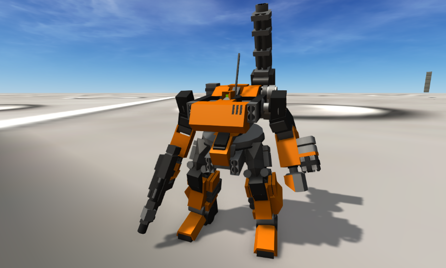 新規に制作された防術機。フロート型脚部によりEN容量に特化した重量のある上半身を搭載してなお安定した移動性能を誇る。重量と装甲の厚さが釣り合っていないが、ピストルを2丁持つため継戦能力に長ける。