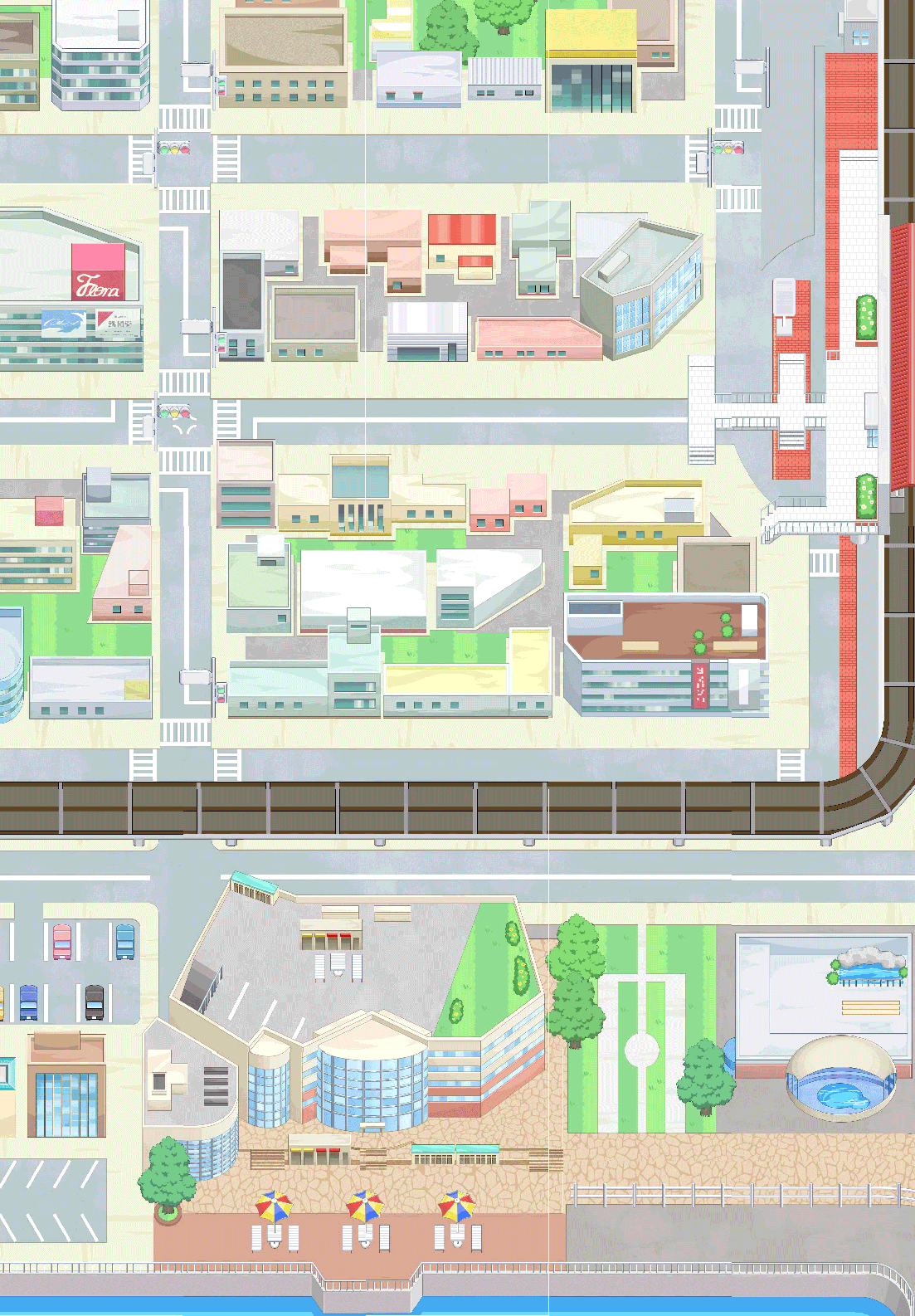 ショッピングモールや電気街、水族館など、色々な施設がそろった発展している街。