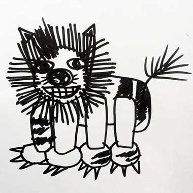 皇 「これは、エリマキトカゲですネ? 面白味があって、とても素晴らしい絵デス。」
