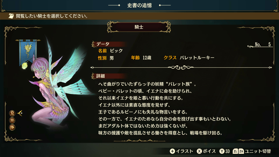 サンダーは序盤では強力でメインアタッカーとして活躍できる。パラライズもやはり便利で早めにナイトメアを作りたい。後半になってくるとエンシェントドラゴン(赤属性5射程ブレスが非常に危険)やスナイパー(3,4射程の飛行特効Sなので天敵)と戦うことが増えるという重大な問題がある。防御面が最低レベルのピックは少し気を抜くとやられたり、被弾を避けるため動き回らなければならず、扱いが難しくなってくる。育っていれば使い所はあるとはいえ、騎士が仕官してきたら早めに解雇して入れ替えるのも検討した方が良い。