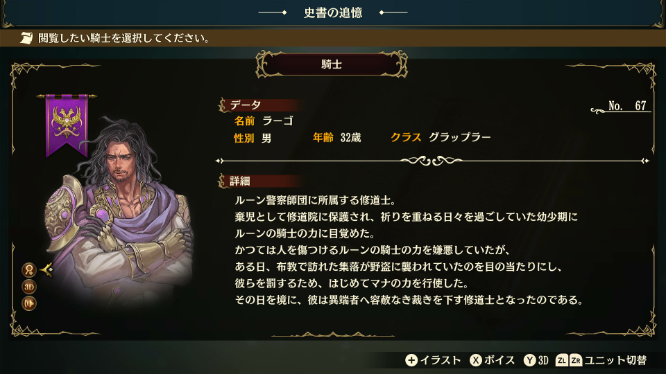 初期レベル14と初期配置ユニットの中ではレベルが高いが、統魔力、個人能力ともにさほど高くなく、