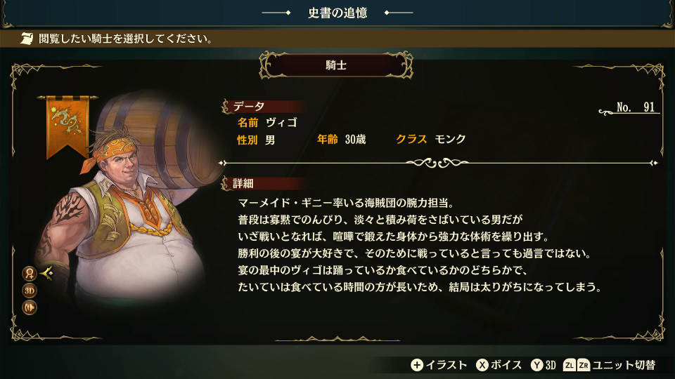 腕力担当という触れ込みだが、体格や二の腕の逞しさとは裏腹に、初期レベルが低いためかゲーム中のステータス上ではさほどでもない。