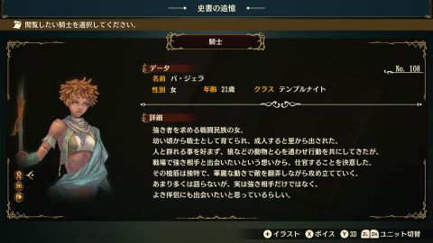 動物との意思疎通が可能とのことだが、優れた武人であり狼少女でもあるという色物稀有な存在であるカルラと(仕官条件的に)対面する機会がないのは少々残念。