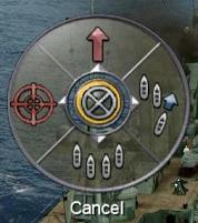 上から時計回りに、攻撃命令、艦隊離脱命令、艦隊フォーメーション設定、攻撃性設定