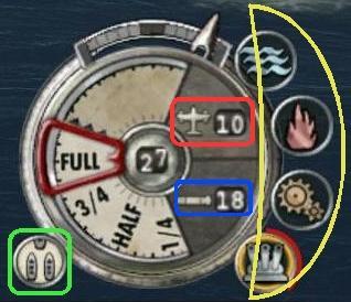 - 機関損傷は船の速度が落ちる。また、潜水艦の場合は潜望鏡の修理。