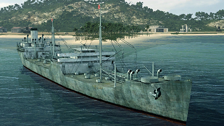 - 鹿野丸(ガダルカナル島・第二次攻撃)※航空機や艦艇での機銃で攻撃が可能 ※本来は鹿野丸型貨物船で米潜水艦グラニオンの撃沈に貢献した