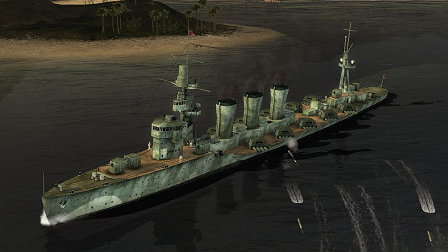 魚雷搭載数:18本 砲は特別強力だとは言えないが、左右どちらも攻撃可能な2の魚雷管を3つ備えている。 |