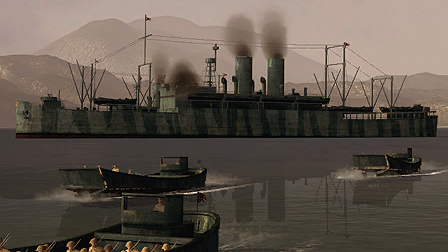 魚雷搭載数:12本 短射程の機銃を備えており、PTボートや魚雷艇を狙う飛行機に反撃したりできる。 |