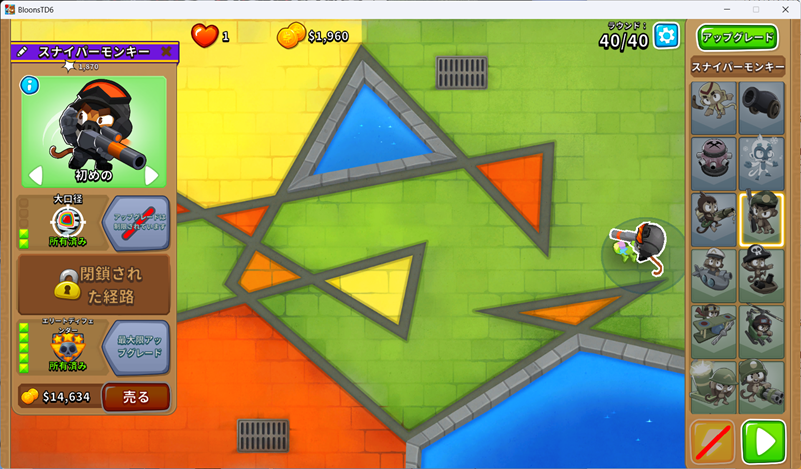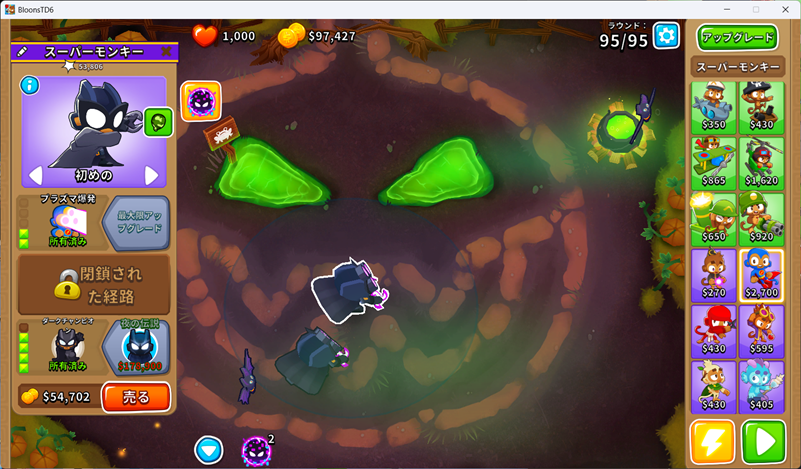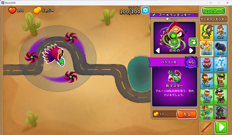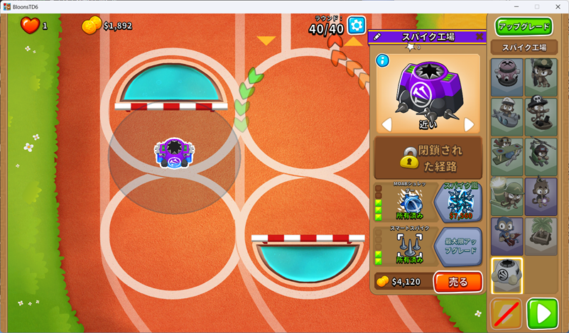 - スーパーモンキー0-4-2:範囲までBFBが来たらアビリティ連打