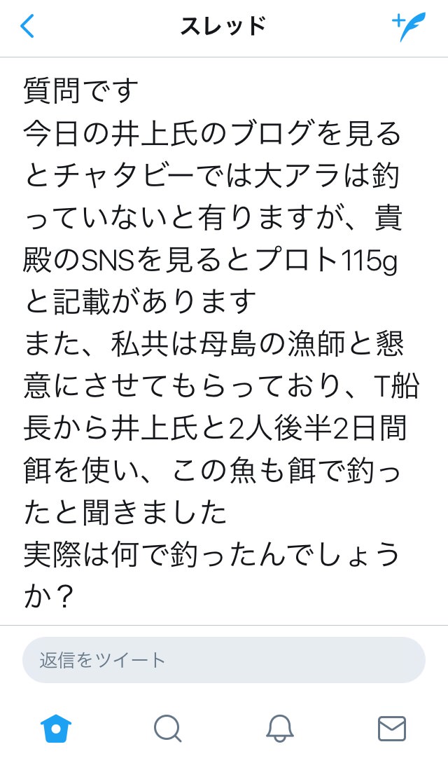 今日の井上氏のブログを見るとチャタビーでは大アラは釣っていないと