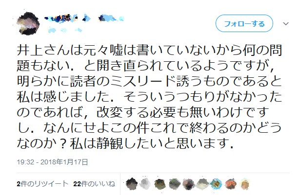 ◯2018/1/17、井上氏「書きたくないですが・・・」というタイトルで、
