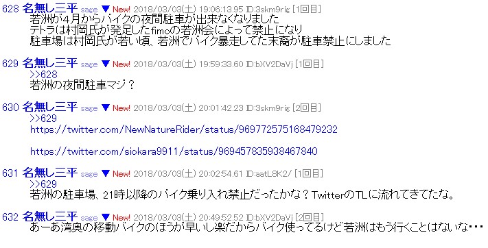 「若洲 夜間バイク駐車禁止」をウィキ内検索
