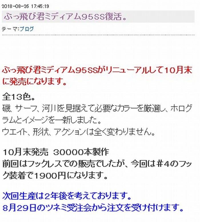 2018-8-26 ぶっ飛び君ミディアム95SS復活。(Web魚拓)