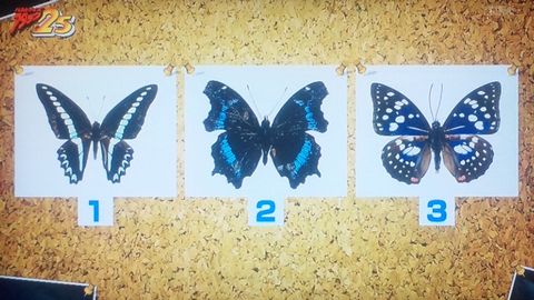 これら3つのチョウの中で、日本の国蝶「オオムラサキ」は何番でしょう?