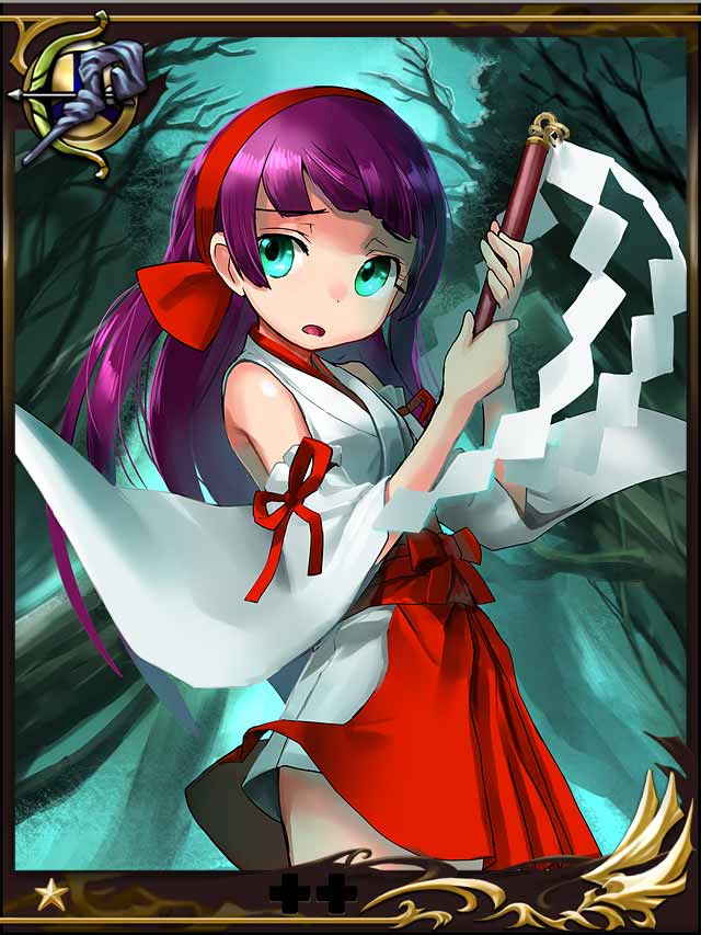 Sレア | 退魔聖光ノ巫女 | 55 | 15 | 敵AT -5% 初期 ★ |