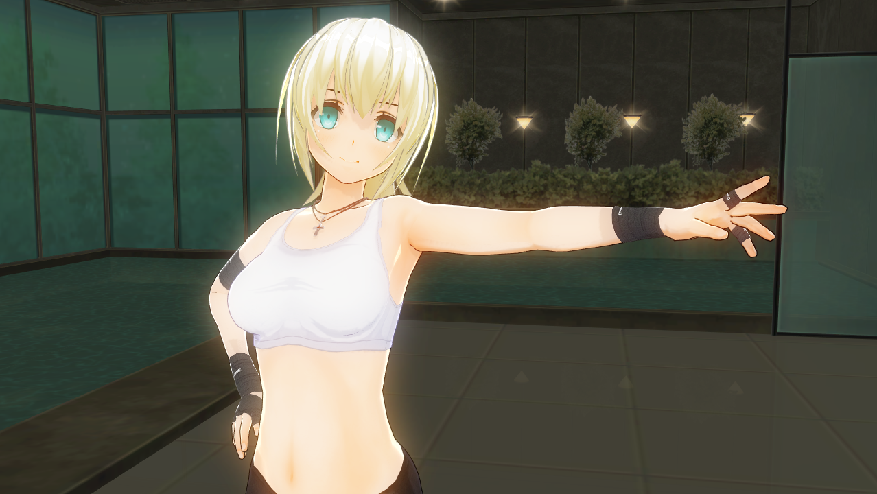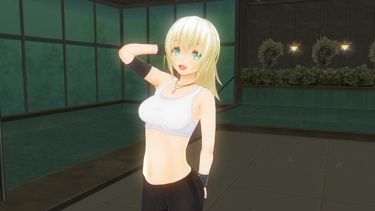 髪色はプラチナブロンドでポニーテールにしている。たまにキャップ帽を被ることも。