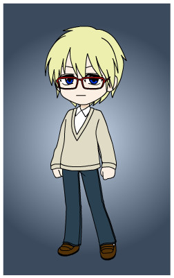 金髪のショートに虚ろ気味な青い目に赤い眼鏡が特徴的である。