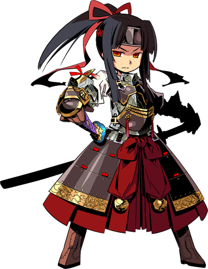 戦闘時は和洋折衷の鎧と黒いハチガネを装備。