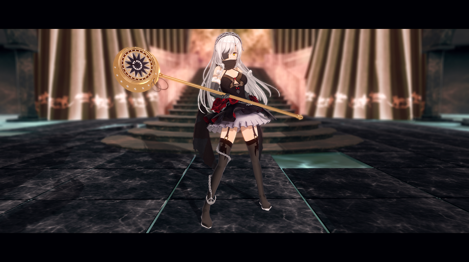 白い長髪で眼帯や口元を隠すマフラー、手に包帯を巻くなどしている。