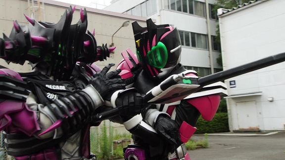 仮面ライダーリバイ「おっと!?(政宗の襲撃を前転回避して振り返る)―――沸いてきたぜ!(突き出した手を強く握りしめて政宗へと殴り掛かっていく) 」