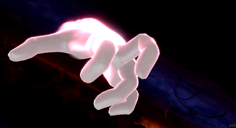 メディ「あれは…!マスターハンド様……!?…いえ、それにしては様子がかなり変です…それに、確かの方は"右手"だったはず… あなたは、一体……!?(突如現れた謎の左手に警戒心を剥きだす) 」