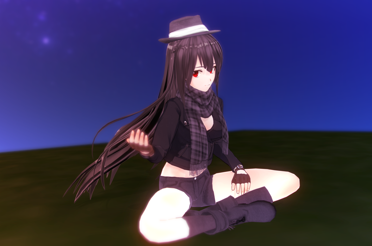 焦げ茶にも近い黒い長髪と、闘志を思わせる真っ赤な瞳。露出に頓着しないワイルド、かつ黒で統一された格好を好む。