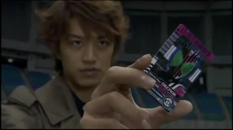 海東大樹「そう。どんな願いも叶えてくれる究極の「お宝」…誰もが喉から手が出るほど欲しがる一品。君たちも開会式で見ただろう?あれはかつて、混沌の世界を創生した神が遺したといわれるもの。あの宝箱の中に何が入っているのか…興味がそそられる。でも、誰にも渡さないよ。「お宝」はすべて、僕が手に入れる。チャキ…ッ…(銃型変身ドライバー『ネオディエンドライバー』を取り出す) ス…――― カ シ ャ ン ッ ! (カードを一枚を取り出し、ネオディエンドライバーの銃身側面中央部に設けられたカード挿入口に装填する) カ シ ャ ッ ! ! (銃身をポンプアクションのように前にスライドさせる) 」