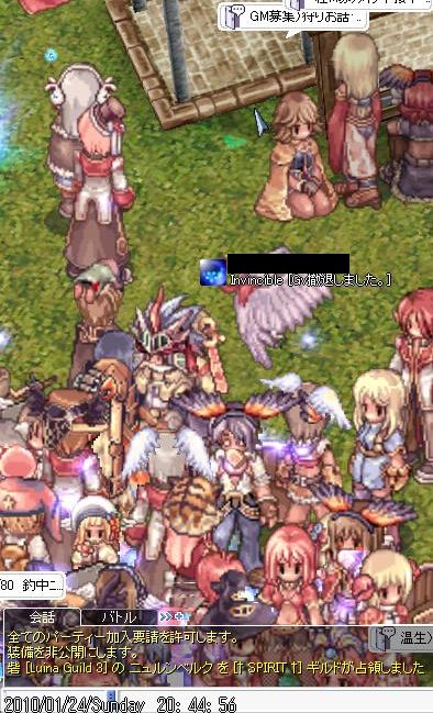2010/01/24プロンテラ南臨時広場でGMを募集しているがその職位は「GV撤退しました。」