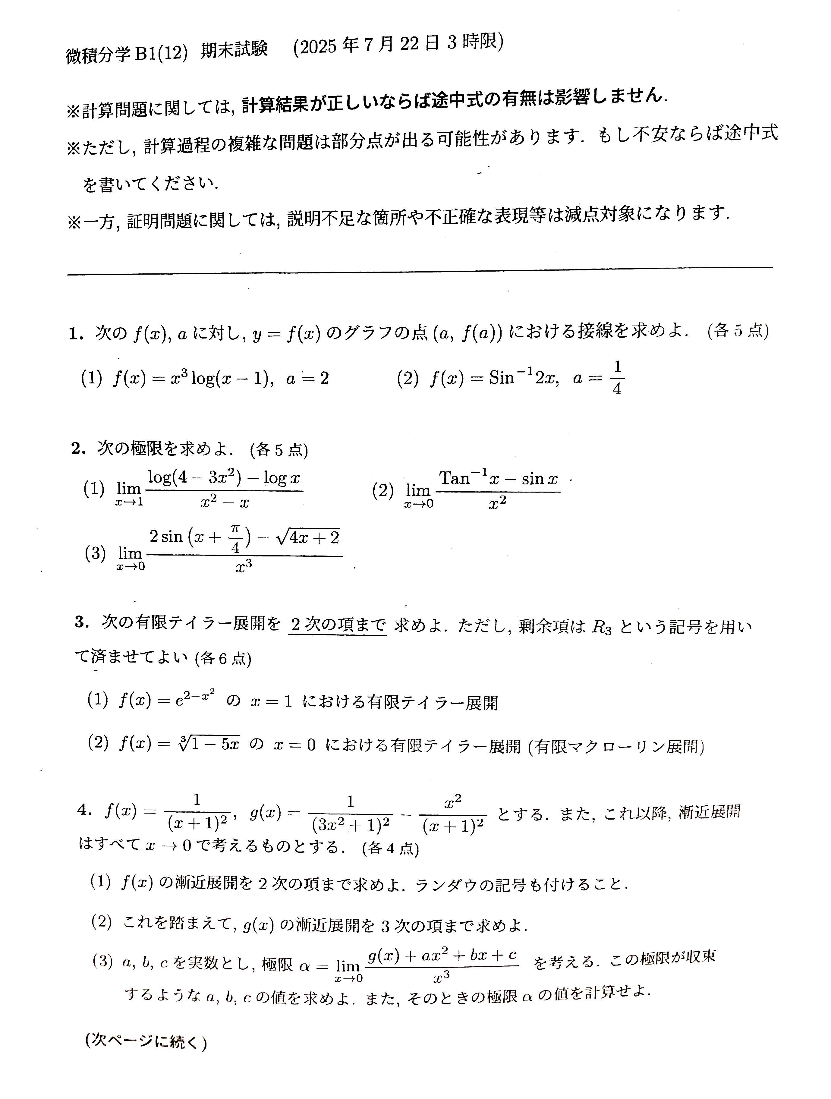 過去問はもちろん、もらった練習問題まじめに解けば良い成績もらえるので、事前にコツコツ解いておこう。