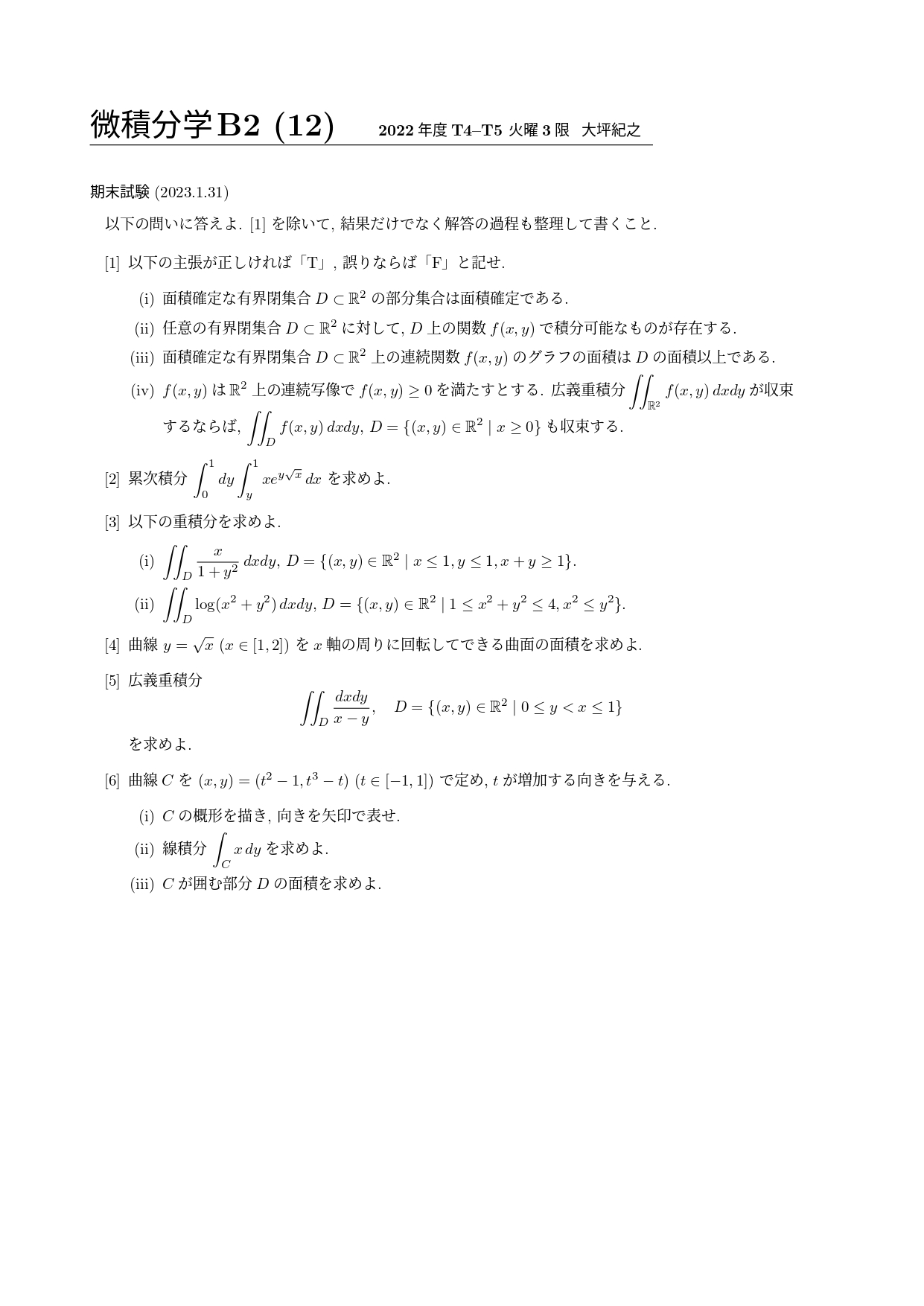 18生より>今井先生優しい。2次のヤコビアンさえ計算間違えた算数もできない私に単位くれたもん。とはいえGP稼ぎのためにも、余裕ぶっこきすぎて落単しないためにもきちんと勉強すべき科目。微積で習ったことが、2・3年で履修する人もいる