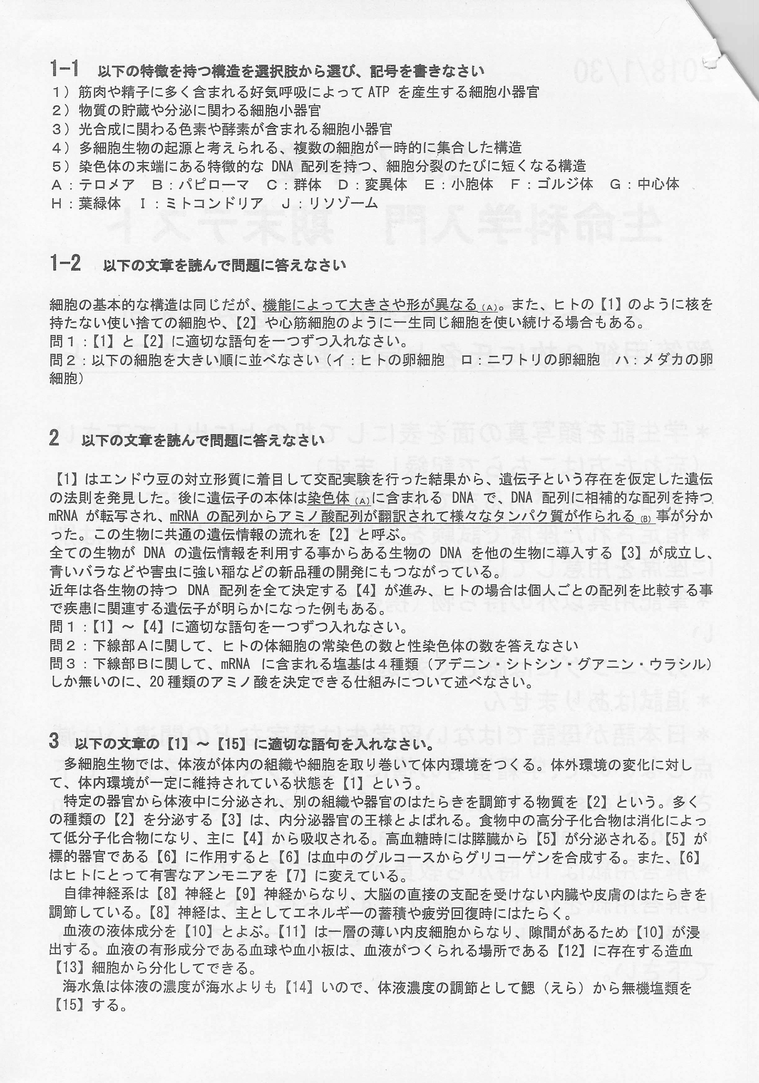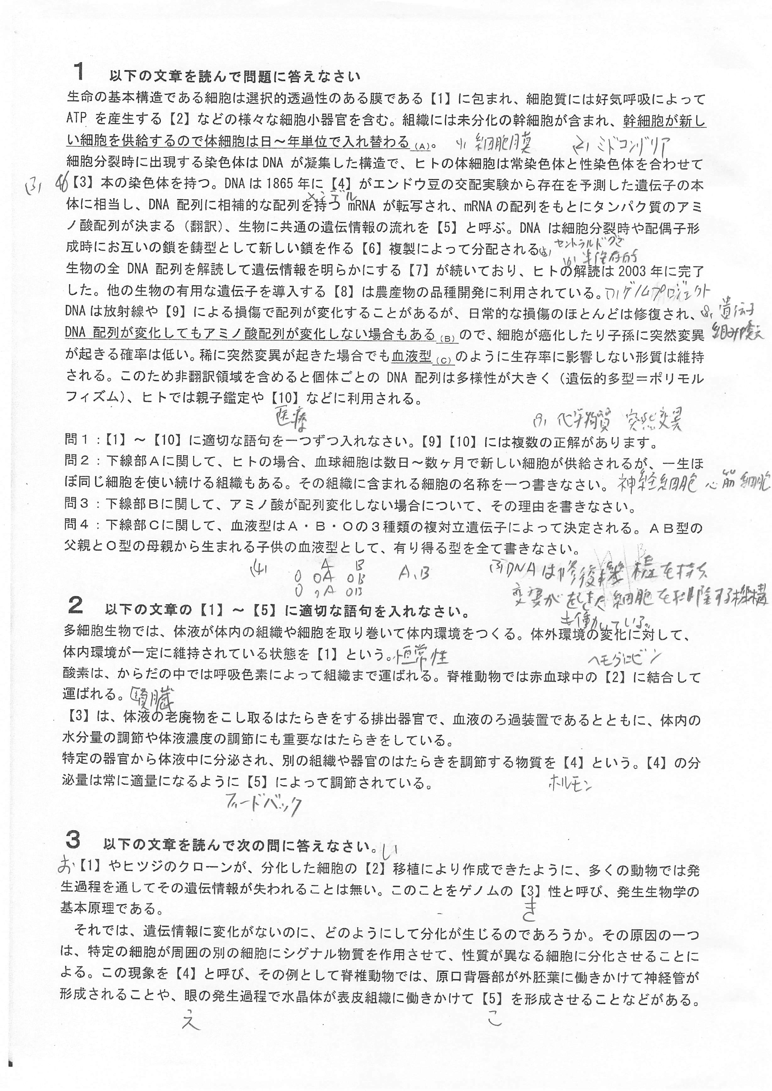 Δセンター試験と2次試験で生物を受けたあなた、生物得意なあなた、最後のテストの日だけ来ても大丈夫。睡眠時間が増えるよ。