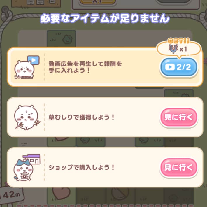 ハチワレのさすまたが0本になった後は、広告を1回再生するごとに1本入手できるようになります。広告は毎日2回再生できるため、たくさん使いたい人は使い切って2本入手するのがおすすめです。