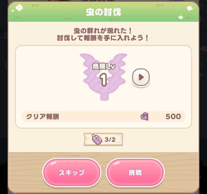 ちいぽけの虫の討伐札の使い道は、スペシャル討伐の虫の討伐です。虫の討伐をクリアすると、報酬として宝石が入手できます。