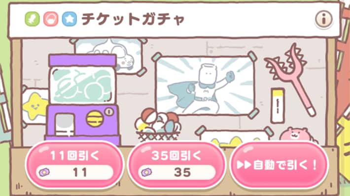ガチャチケットは、草むしりのカプセルマスから入手できます。ただ出現するかどうかランダムな上、一度に入手できる枚数は少ないです。