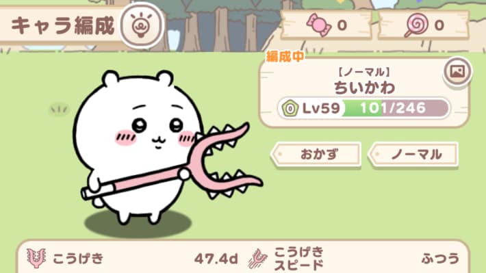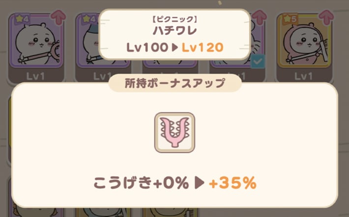 ちいぽけのランクアップは、キャラのレベルを100まで上げ、大きいアメを使用することで行えます。
