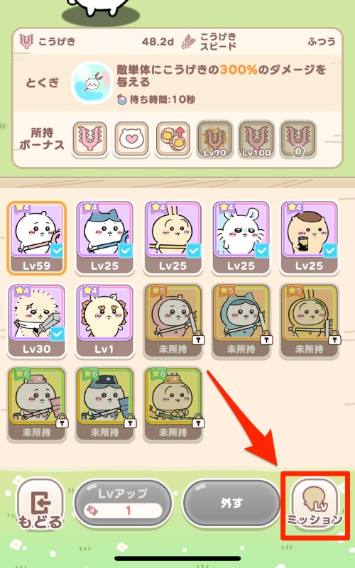 ちいぽけのランクアップのメリットは、所持ボーナスの強化、むちゃ特訓の解放、Lvアップミッションの進行です。どれも戦力の強化に欠かせない要素となります。
