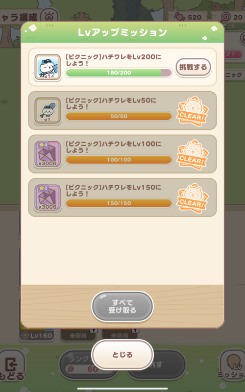 ┗むちゃ特訓シールはLv100以降上がるごとに獲得 - Lvアップミッションの進行