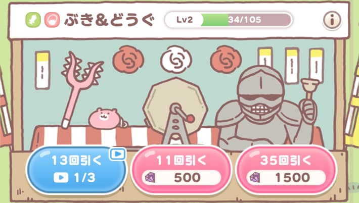 「むちゃうマン」などの強力なおたすけキャラを確保できたら、ぶき&どうぐガチャも優先度を上げて回しましょう。武器道具は1つ1つの所持ボーナス効果が大きく、入手していくだけで行き詰まっていた場面を突破しやすくなります。