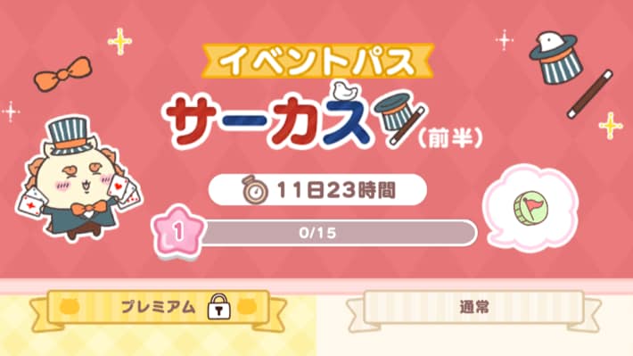 サーカスイベントパスには、プレミアムパスがあります。プレミアムパスを購入することで、ミッションが増えるだけでなく、パスランク到達報酬が大量に追加されます。欲しい方はプレミアムパスの購入も検討してみましょう。