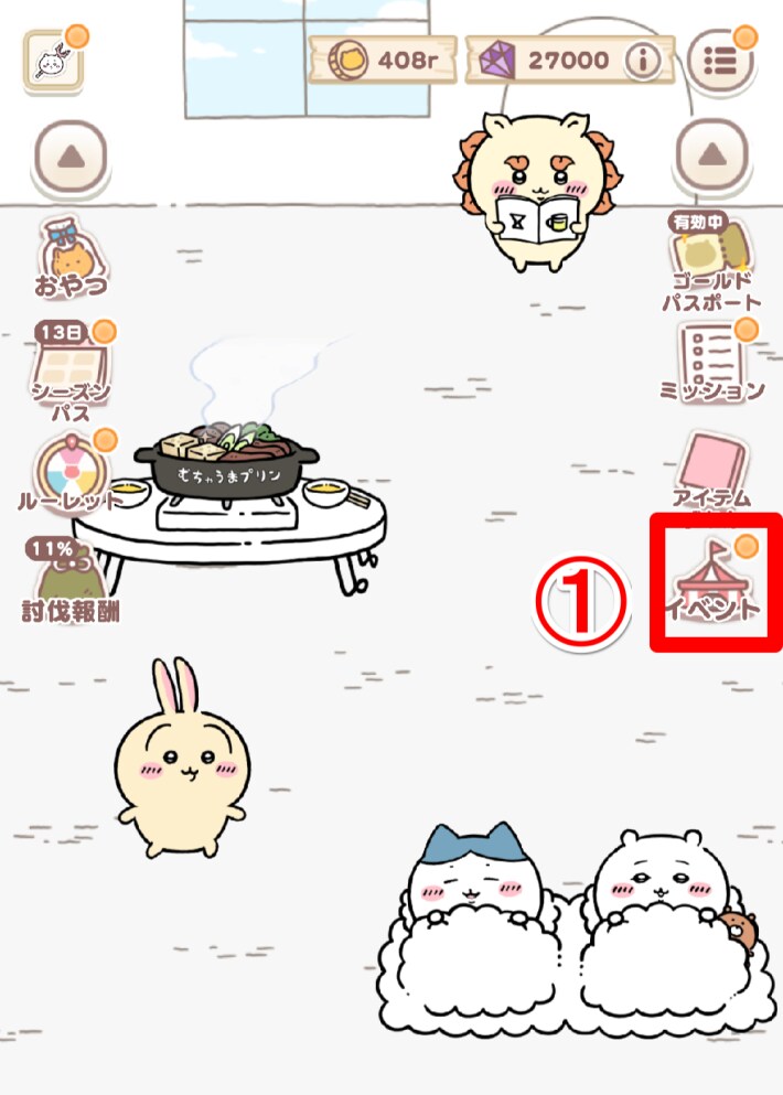 プレミアム | 通常報酬+下記報酬がもらえる 宝石×27000 討伐報酬コイン10時間×4 小さいアメ×220 大きいアメ×60 ゾウの討伐札×2 虫の討伐札×2 ふしぎな枝×30 げんき×100 ハチワレのさすまた×4 うさぎの討伐棒×4 限定プロフカード |