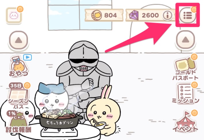 - ホーム画面右上でメニューを開く