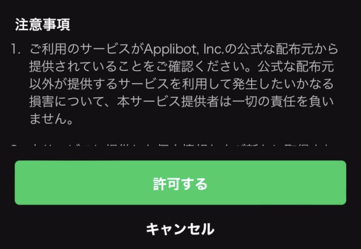 LINE起動後「許可する」を押しDL