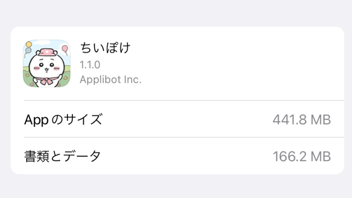 ちいぽけのアプリの必要容量です。ちいかわポケットアプリのデータ容量や、iOSとAndroidの推奨スペック、対応機種を掲載。必要な空き容量を知りたい時にお役立て下さい。