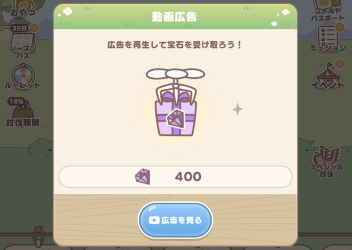 - プレゼントの広告視聴で入手