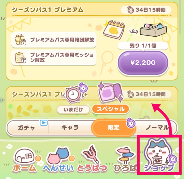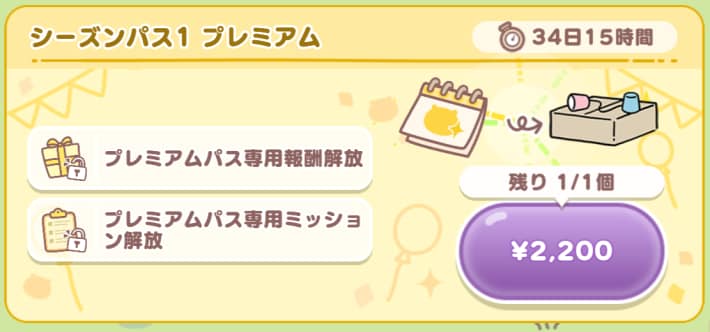 毎日ログインしてお得にアイテムを入手するならシーズンパスもおすすめです。プレミアムパスを購入することで、専用ミッションや専用報酬が解放されるため、短い時間で育成を進めることができます。