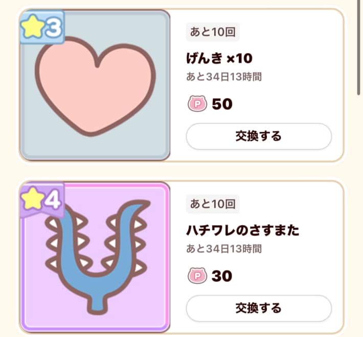 おすすめ度:★★☆☆☆ ・アメが入手できる ・月がわり、週がわりと選択 |