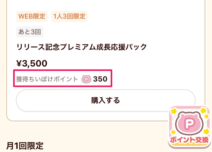 ちいぽけの課金は、WEBストアを通して購入することで「ちいぽけポイント」を貯めることができます。ポイントはゲーム内アイテムや壁紙と交換できるため、ゲーム内でそのまま課金するよりもお得です。