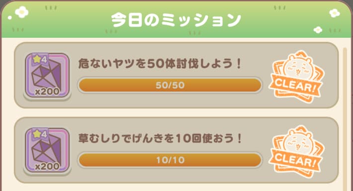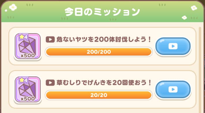 草むしりでげんきを10回使おう! | 宝石×200 |