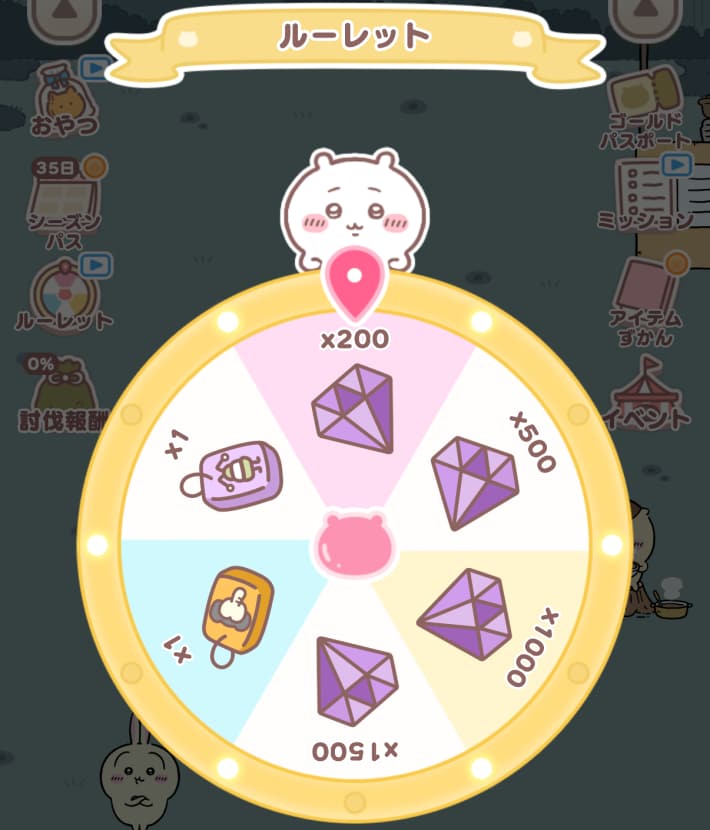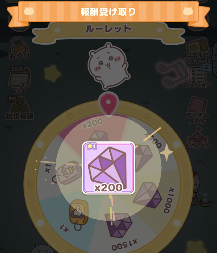ルーレットでは、ランダムで宝石や討伐札を入手することができます。運が良ければ宝石を1500個入手できるので、毎日欠かさずにやっておきましょう。